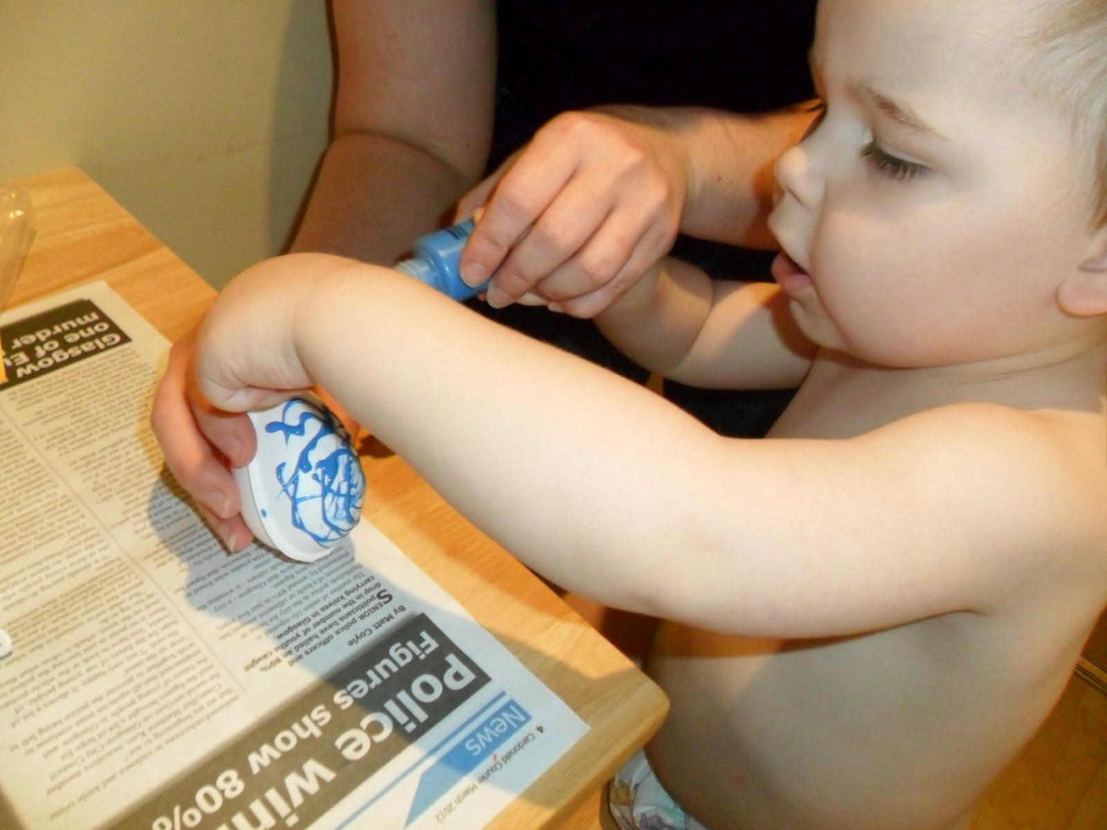 Gavin playing with Rhys' new Iron Man. He loves that thing.
